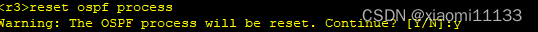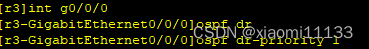 到这里ospf基本配置就完了,现在要r3来当DR设备,所以r3的g0/0/0接口优先级改为1其他接口优先级改为0,并且重启设备的ospf进程。如下