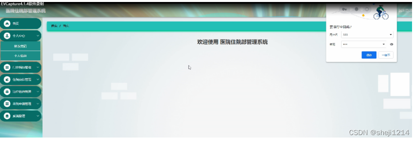 医生登陆系统,可以查看首页,个人中心,门诊病历管理,住院安排管理,治疗信息管理,出院申请管理,系统管理等功能,还能对每个功能逐一进行相应操作,如图5-10所示。