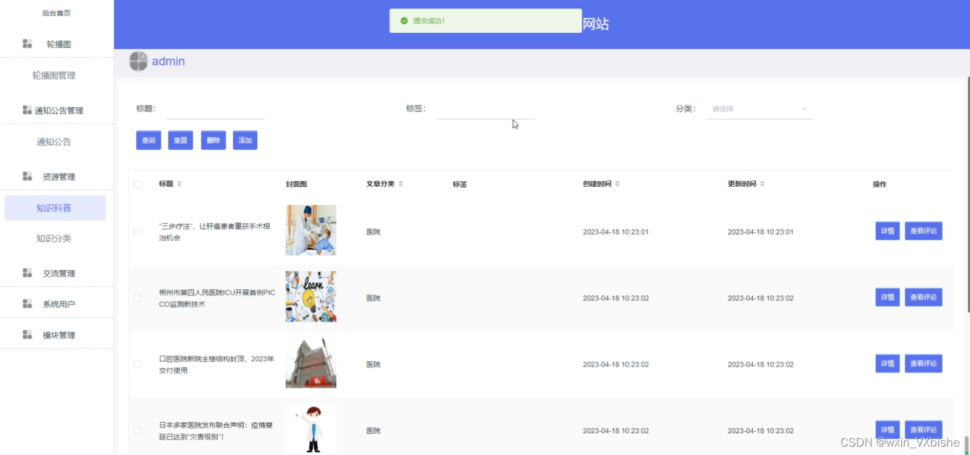 图5-9知识科普管理界面图
