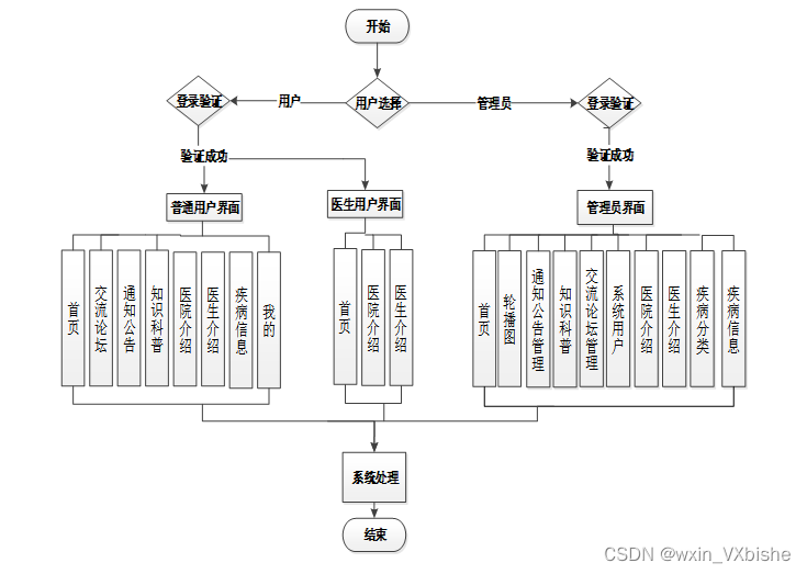 不同用户的登录问题:根据用户信息(管理员、普通用户、医生用户)实现管理员操作权限的区分并显示不同的操作界面。