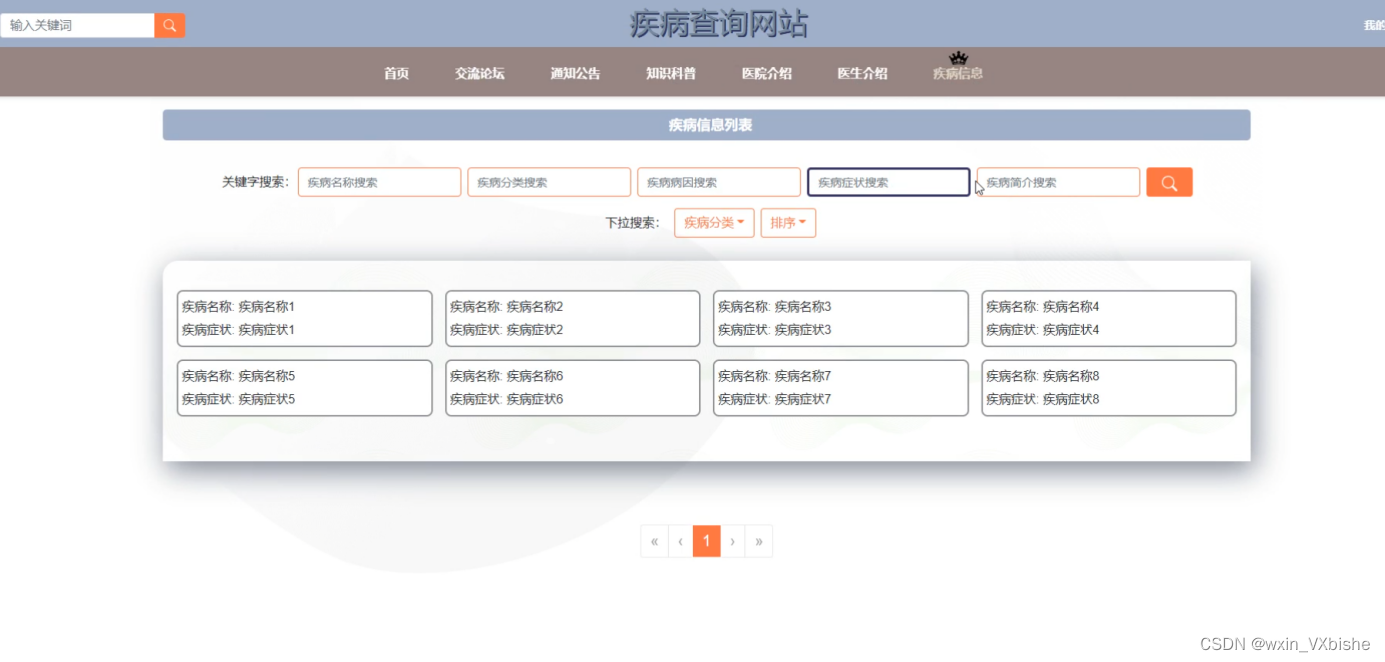 Keywords: springboot framework; JAVA programming language; MYSQL database; Disease inquiry website