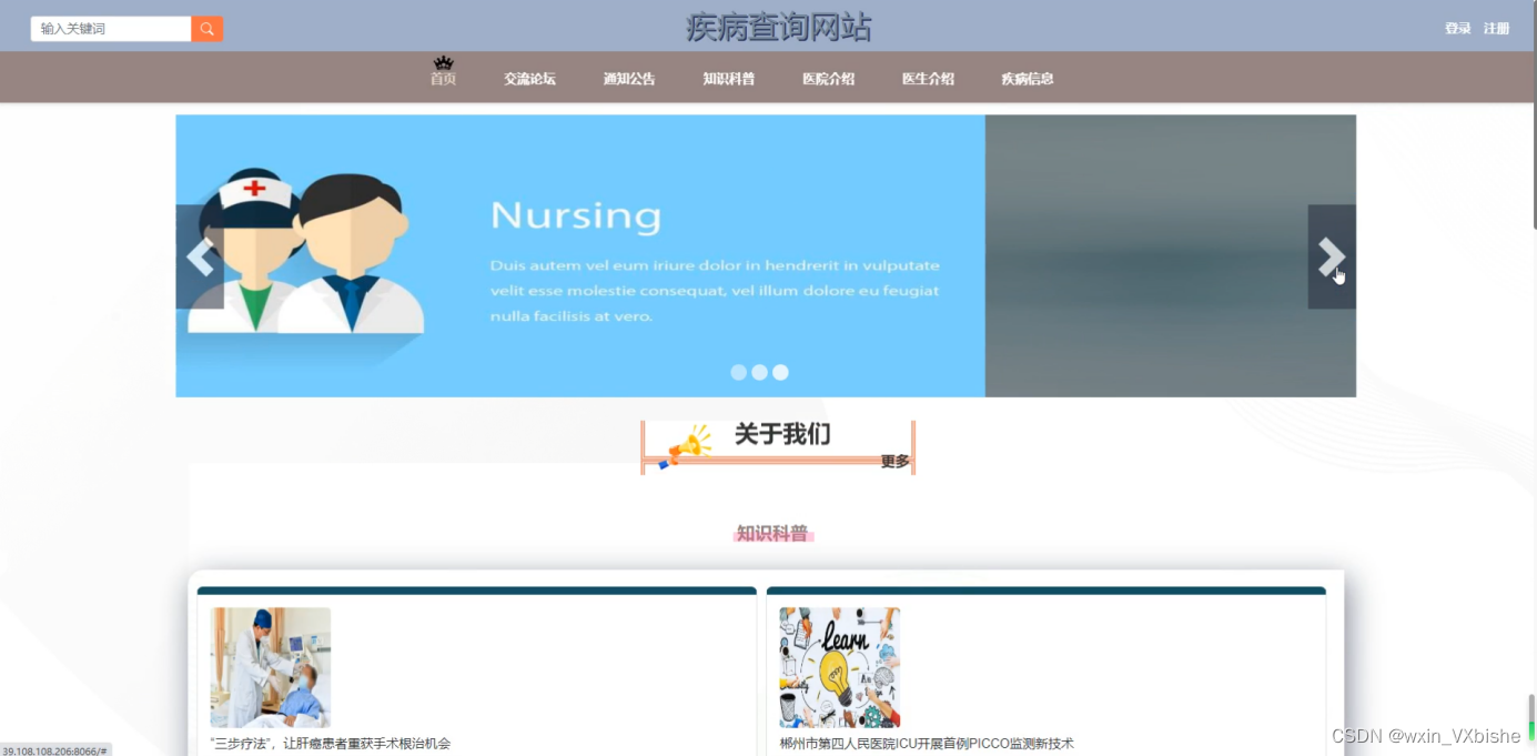 关键词:springboot框架;JAVA编程语言;MYSQL数据库;疾病查询网站
