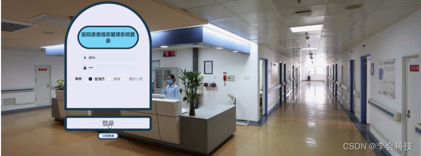 管理员通过输入用户名、密码、角色进行登录进入医院患者信息管理系统,如图5-1所示。