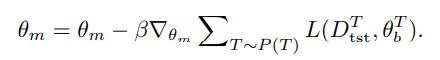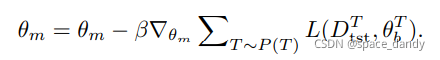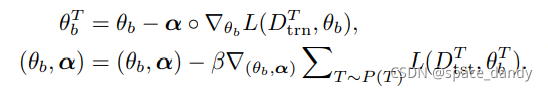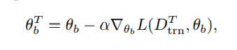 寻找一个良好的参数初始化,使基础学习者能够使用少量样本快速概括新任务。具体来说,当基础学习者处理任务T时,基础学习者的更新方程为: