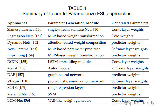 L2M方法只利用样本的相似性进行推理,无需考虑类的数量和每个类的支持样本,因此不会收到测试场景的特定设置的限制;L2F方法需要使用少数支持样本对每项新任务进行微调,可能产生一个相对较长的适应期来准备每项任务;L2A和L2A必须部署用于基础学习者完全不同的另一个元学习者来生成一系列的模型参数,因此其勉励你的挑战是大量的模型参数,增加了模型训练的难度。