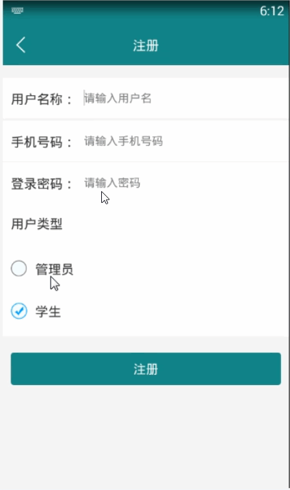 普通用户进入界面(界面拥有3项功能 可以像微信一样在正下方分开设置button)管理宿舍功能
