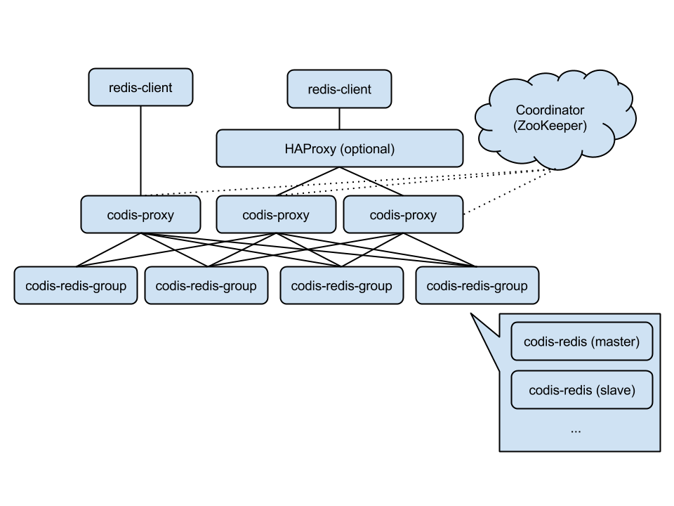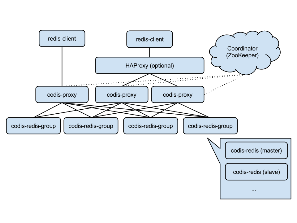 依赖zookeeper存放数据路由表和codis-proxy节点的元信息,codis-config发送的信息都会通过ZooKeeper同步到各个存活的codis-proxy