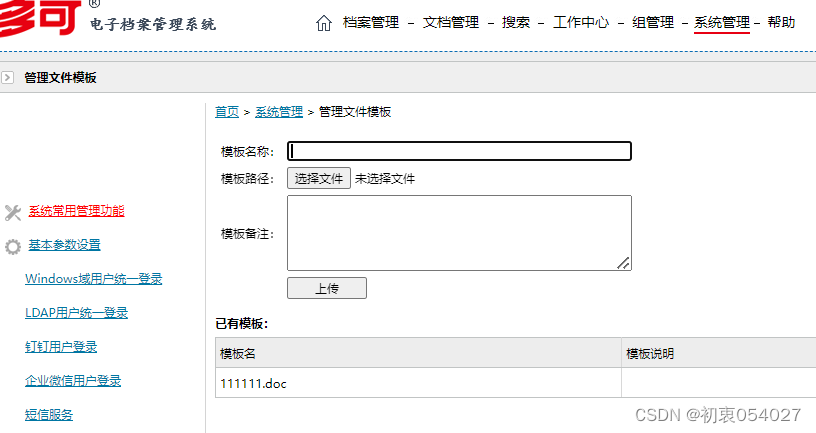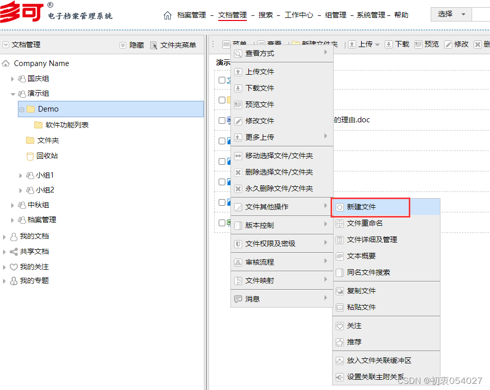 在多可软件中可以上传单个或者是多个文件,也可以直接在线新建文件。系统管理员还可以创建文件模板,这样用户在新建文件的时候还可以选择“模板”文件。