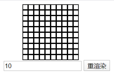 需求:创建一个n*n的格子,n是输入框的数字,点击重渲染可以重新画一个n*n的格子,鼠标移入格子中,对应的格子背景设变成红色,点击对应的格子,背景色变成蓝色,再点一次还原颜色。