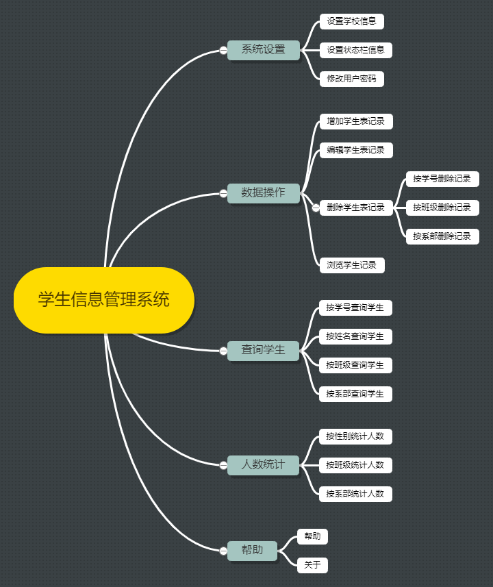 项目说明:本实训案例教学,利用Java SE基本知识是开发【学生信息管理系统】。本系统包括登录注册、系统设置(设置学校信息、设置状态栏信息、修改用户密码)、数据操作(增加学生记录、编辑学生记录、删除学生记录、浏览学生记录)、查询学生(按学号查询、按姓名查询、按班级查询、按系部查询)、人数统计(按性别统计人数、按班级统计人数、按系部统计人数)等功能。