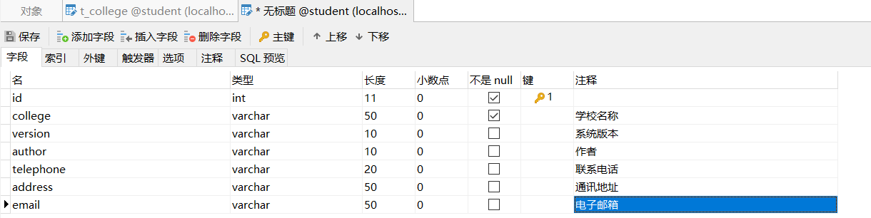 例如创建College实体类对应数据库的t_college表