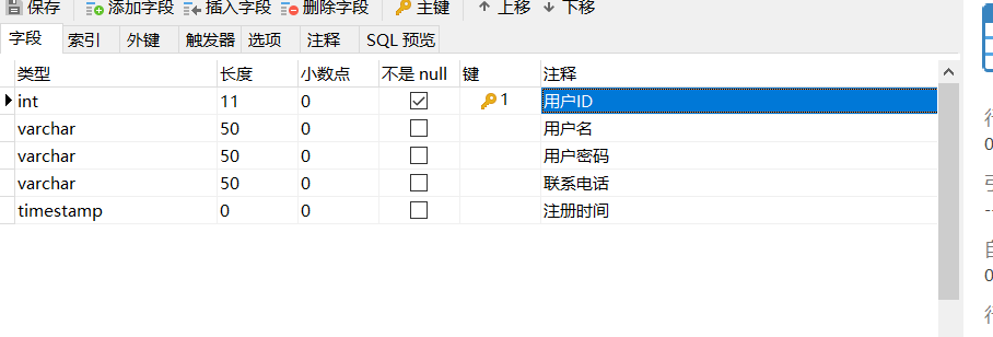 `id` int(11) NOT NULL AUTO_INCREMENT COMMENT '用户ID',