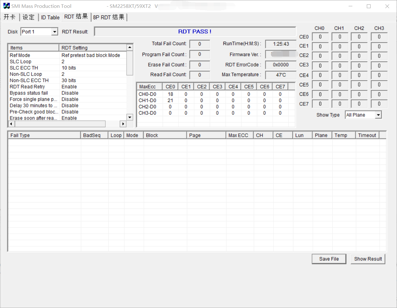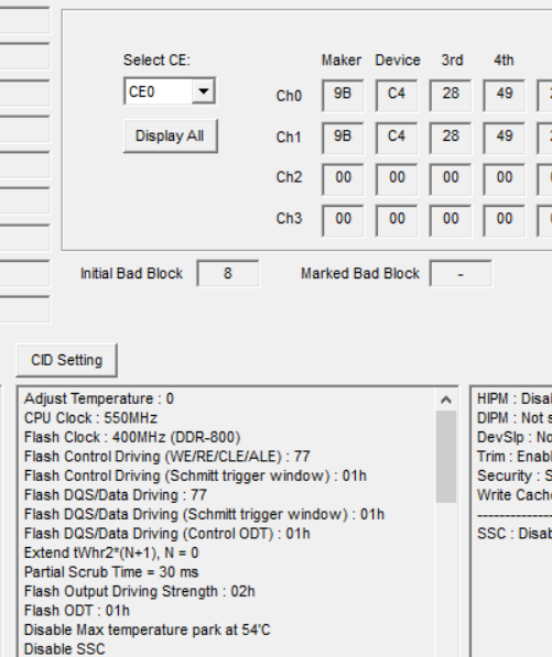 随便焊一下,ce齐全,单颗2ce128G,单帖分布2ch/1ce。跑个rdt看看,DDR800。