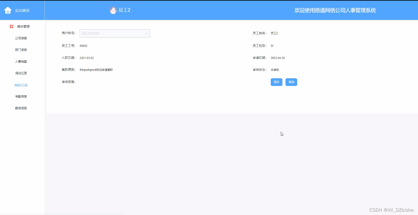 离职添加界面如下图所示。