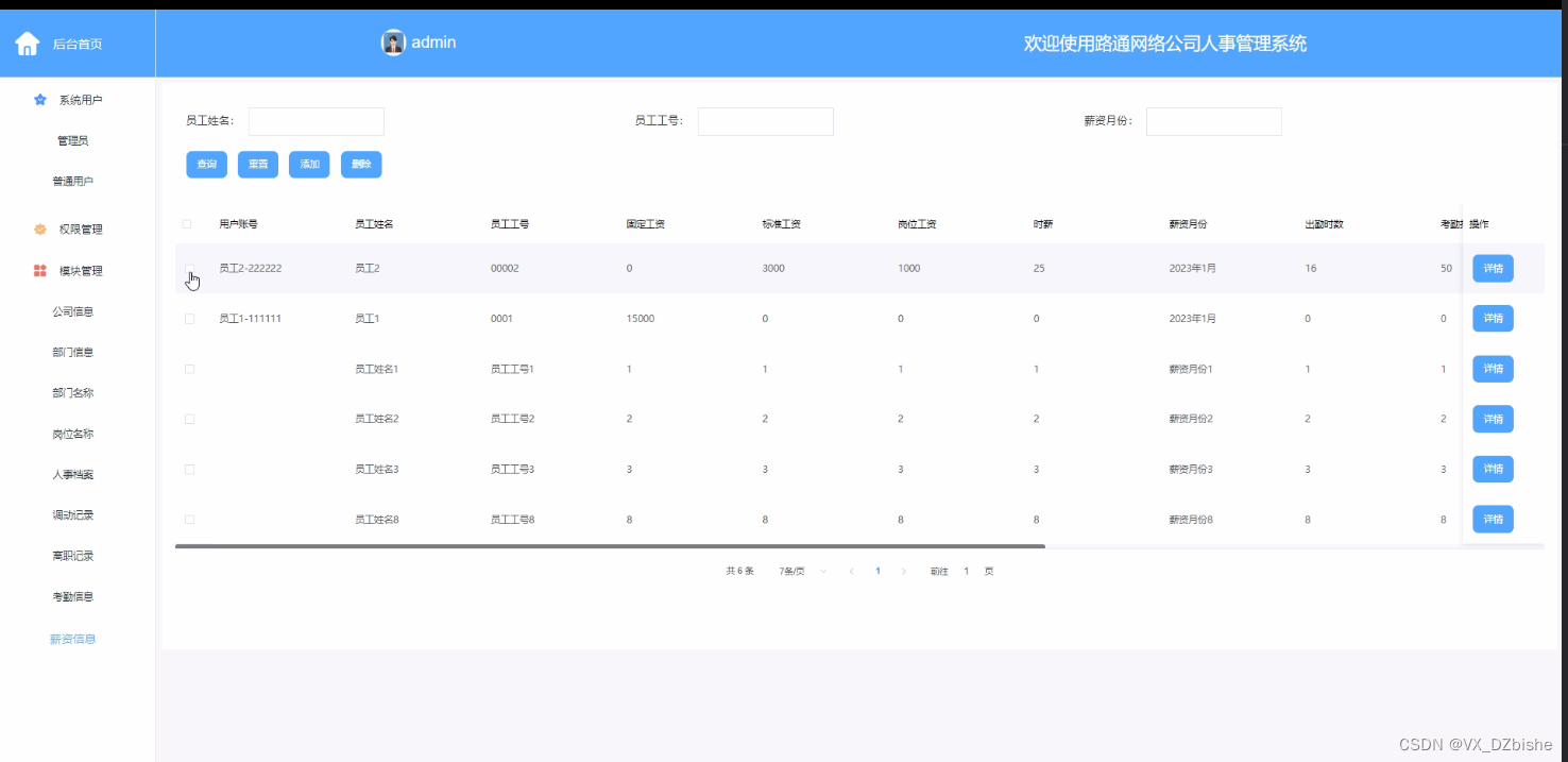 员工查询界面如下图所示。