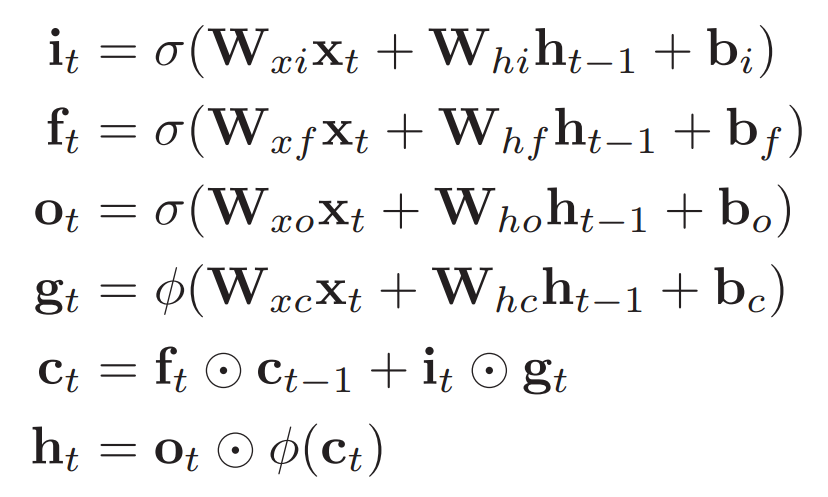 改进后的LSTM cell有很多种不同的结构,最常见最基本的结构可以表示成下图