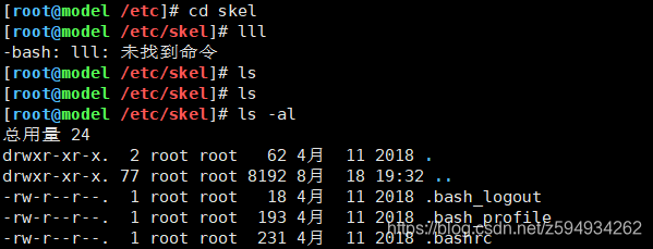 此时看到了熟悉的三个文件,创建用户时会自动复制该目录下的文件到创建的用户目录下
