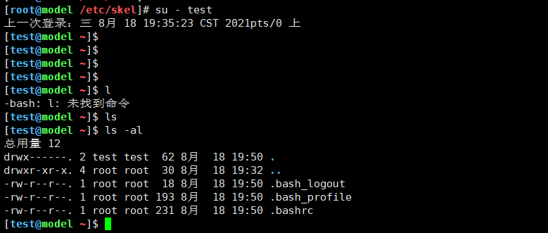 [root@model /etc/skel]# cp /etc/skel/.bash* /home/test