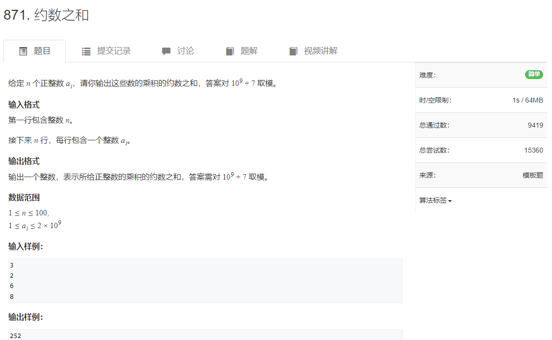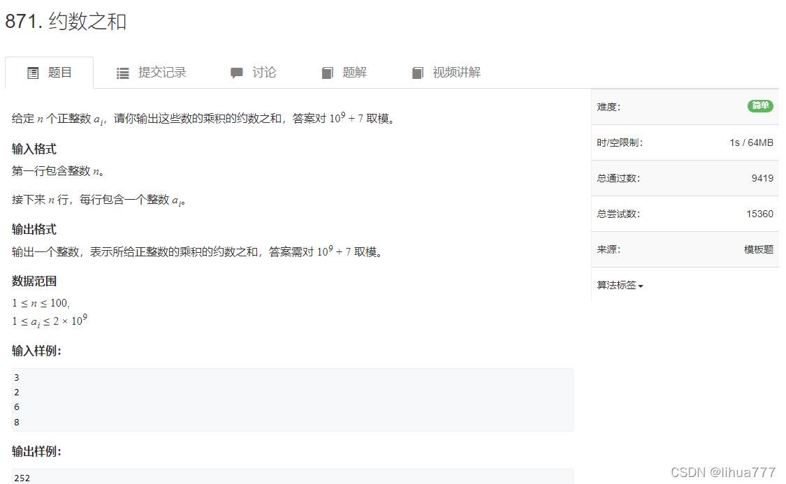 [AcWing]AcWing 871. 约数之和 (C++实现)约数之和模板题_cloud的博客-CSDN博客_约数之和c++