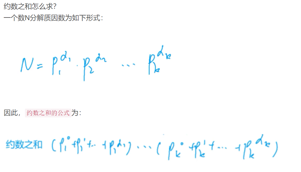 因为拆开任何一项,都是一个约数,相加便是约数之和。(这个公式是将所有约数相加后提取公因数得到的)