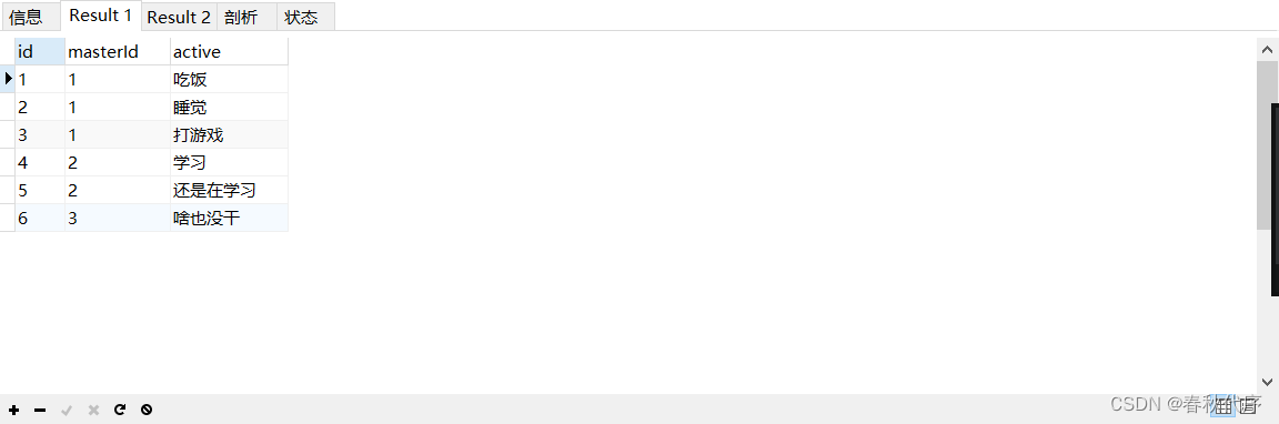 @ApiModelProperty("子表主键id")private String id;@ApiModelProperty("主表主键id")private String masterId;@ApiModelProperty("行为")private String active;