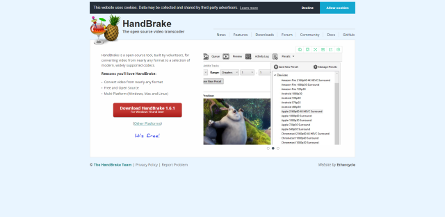 Handbrake,是一款开源免费的视频处理工具,支持 macOS、Windows 和 Linux 系统,可用来压缩视频体积、转换视频格式,还能压制输出带有字幕的视频。