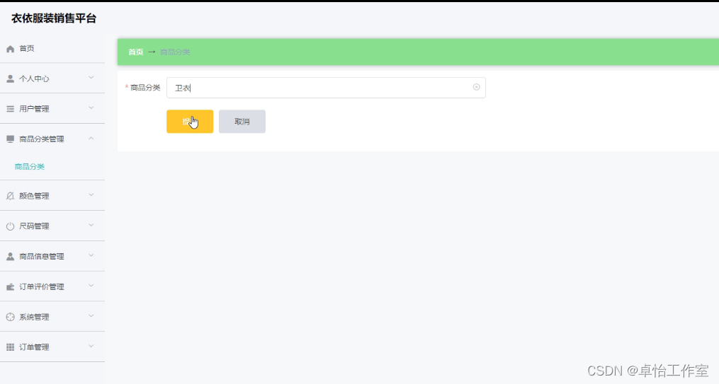 系统管理员可以对商品分类进行添加,修改,删除操作。界面如下图所示: