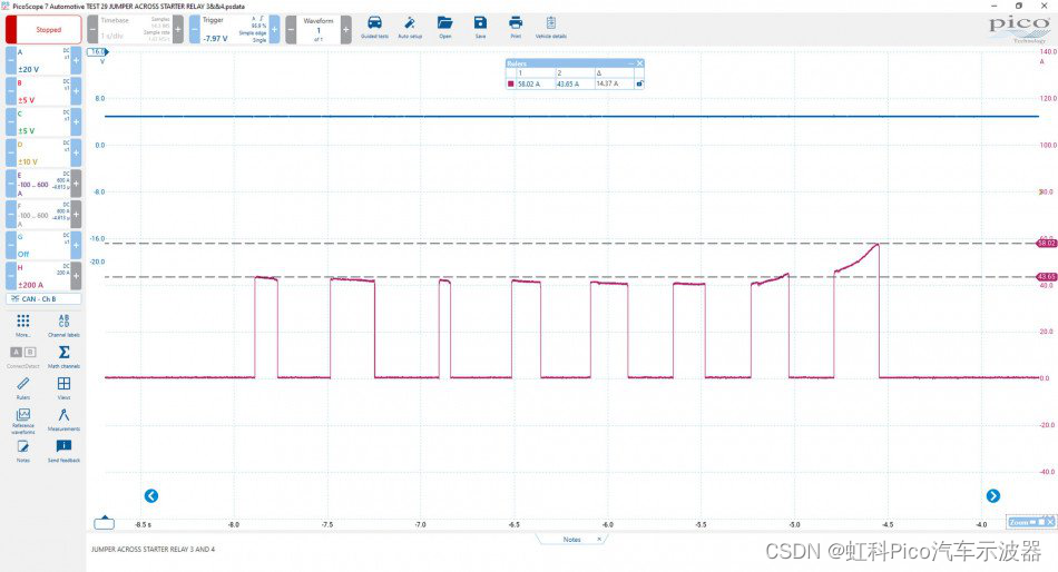 回顾译码后的数据我们可以发现在这段期间没有干扰或中断的数据包,因此是时候更详细的研究12V启动机线路跟运作了。