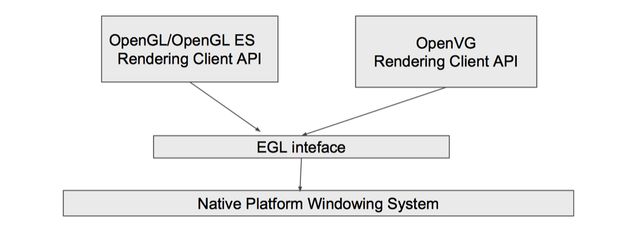 EGL 是 OpenGL ES 渲染 API 和本地窗口系统(native platform window system)之间的一个中间接口层,它主要由系统制造商实现。EGL提供如下机制: