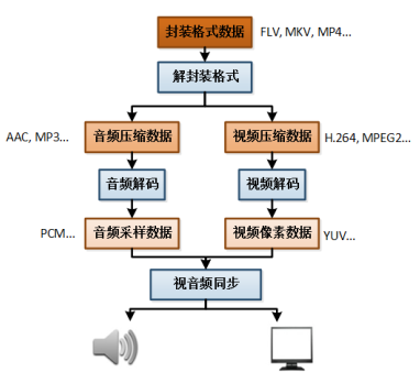 1.封装格式数据:就是把音频和视频文件封装成一个文件,常见有AVI、FLV、MP4等