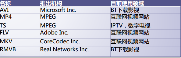 • 封装格式(MP4,RMVB,TS,FLV,AVI)