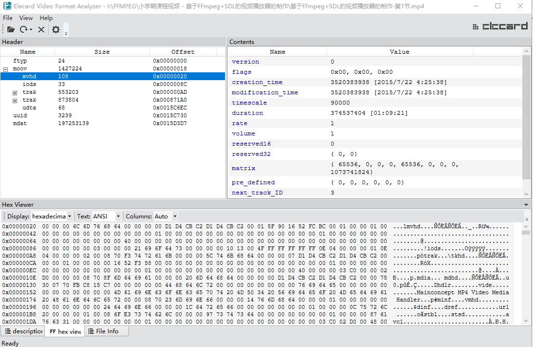 使用Elecard Format Analyzer查看封装格式: