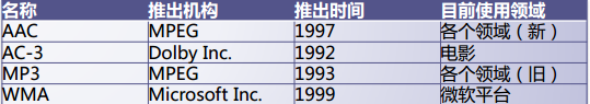 • 音频编码数据(AAC,MP3,AC-3)