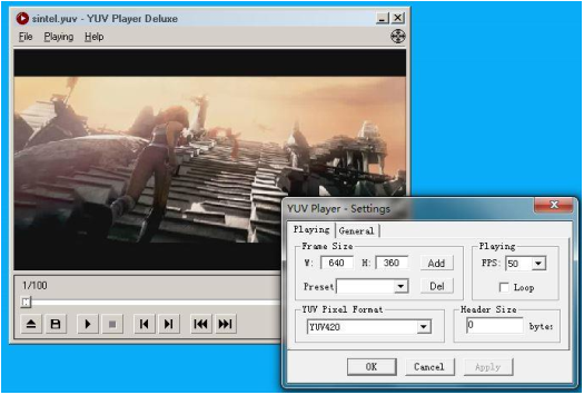 • YUV格式像素数据查看工具:YUV Player