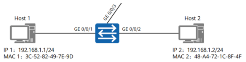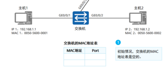 主机1发送一个请求数据包,广播询问主机的MAC地址