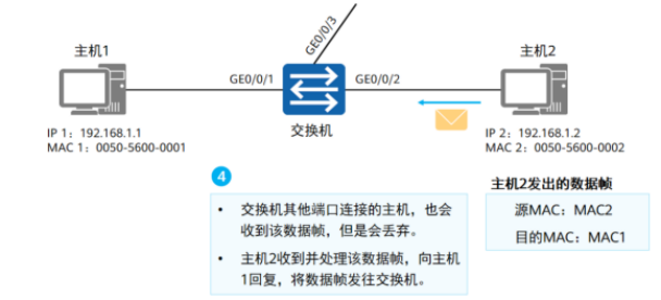 丢弃:与目的MAC地址不一致,执行丢弃操作