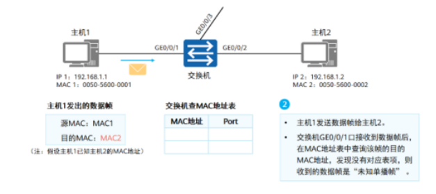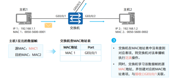 泛洪(广播):在MAC地址表找不到对应的目的MAC地址与接口的对应关系是,交换机执行广播操作