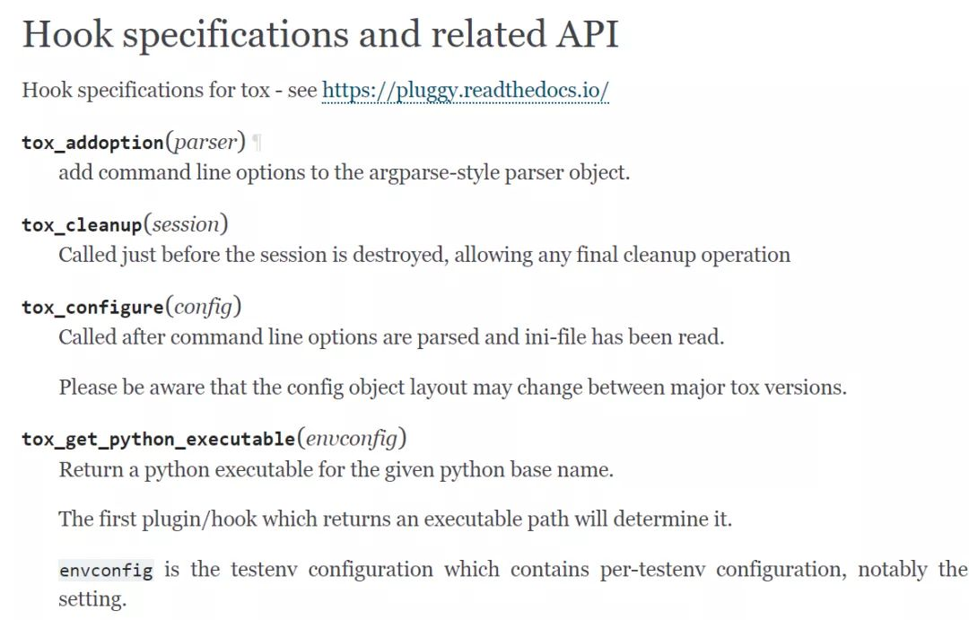 关于 tox 有哪些配置项、使用条件、什么含义、高级用法等等内容,可在官方文档中查看:https://tox.readthedocs.io/en/latest/config.html
