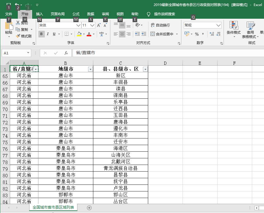 if __name__ == "__main__":test = Excel2Sql(config.src_path+"\\data\\2019最新全国城市省市县区行政级别对照表(194).xls","全国城市省市县区域列表")print(test.init_SampleViaProvince_name("北京市"))