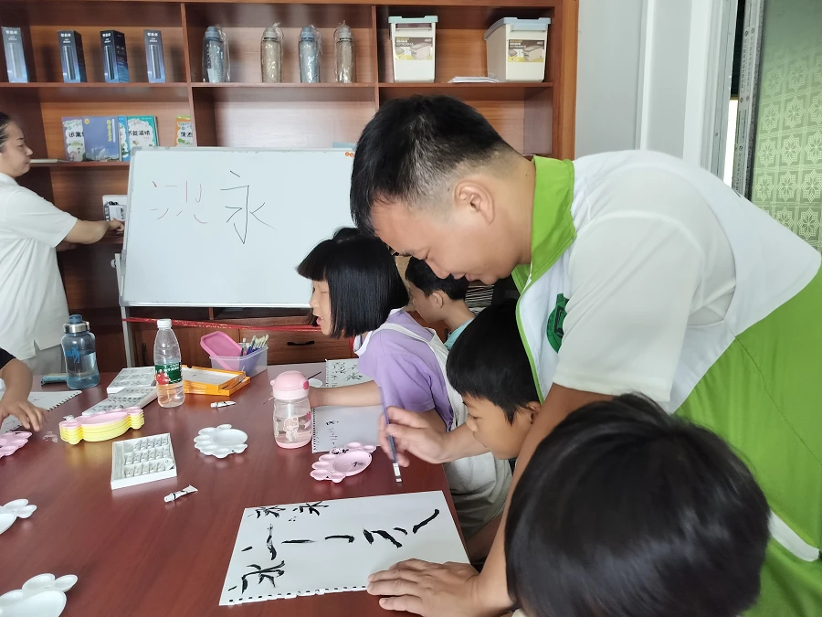 “星乐园-乡村儿童公益辅导服务项目”特在从化区太平镇西湖村助学点开设“武行舞动”武术课-“永字养生功法”,希望借助“永字养生功法”,纠正孩子庸懒的行为习惯,同时,让孩子感受浓厚的中华文化魅力。“永字养生功法”是由汉字“永”字八个笔画演变而来的拳法,学生在练习永字养生功的时候,也要学习汉字的笔画,练习使用毛笔的写法,这样,即让学生掌握写字的技巧,也锻炼了身体,达到修心养性的目的。