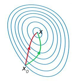 或者从几何上说,牛顿法就是用一个二次曲面去拟合你当前所处位置的局部曲面,而梯度下降法是用一个平面去拟合当前的局部曲面,通常情况下,二次曲面的拟合会比平面更好,所以牛顿法选择的下降路径会更符合真实的最优下降路径。