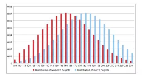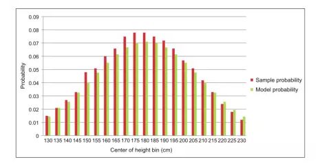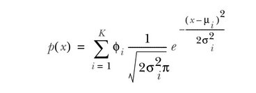 【数据猿导读】 高斯混合模型(Gaussian Mixture Model)通常简称GMM,是一种业界广泛使用的聚类算法,该方法使用了高斯分布作为参数模型,并使用了期望最大算法进行训练。本文对该方法的原理进行了通俗易懂的讲解,期望读者能够更直观地理解方法原理 作者 | 陈运文 官网 | www.datayuan.cn 微信公众号ID | datayuancn 高斯混合模型(Gaussian Mixture Model)通常简称GMM,是一种业界广泛使用的聚类算法,该方法使用了高斯分布作为参数模型,并使用了期望最大(Expectation Maximization,简称EM)算法进行训练。本文对该方法的原理进行了通俗易懂的讲解,期望读者能够更直观地理解方法原理。文本的最后还分析了高斯混合模型与另一种常见聚类算法K-means的关系,实际上在特定约束条件下,K-means算法可以被看作是高斯混合模型(GMM)的一种特殊形式(达观数据 陈运文)。 什么是高斯分布? 高斯分布(Gaussian distribution)有时也被称为正态分布(normal distribution),是一种在自然界大量的存在的、最为常见的分布形式。在提供精确数学定义前,先用一个简单的例子来说明。 如果我们对大量的人口进行身高数据的随机采样,并且将采得的身高数据画成柱状图,将会得到如下图1所示的图形。这张图模拟展示了334个成人的统计数据,可以看出图中最多出现的身高在180cm左右2.5cm的区间里。 图1 由334个人的身高数据构成的正态分布直方图 这个图形非常直观的展示了高斯分布的形态。接下来看下严格的高斯公式定义,高斯分布的概率密度函数公式如下: 公式中包含两个参数,参数μ表示均值,参数σ表示标准差,均值对应正态分布的中间位置,在本例中我们可以推测均值在180cm附近。标准差衡量了数据围绕均值分散的程度。 学过大学高数的同学应该还记得,正态分布的一个背景知识点是,95%的数据分布在均值周围2个标准差的范围内。本例中大约20到30左右是标准差参数的取值,因为大多数数据都分布在120cm到240cm之间。 上面的公式是概率密度函数,也就是在已知参数的情况下,输入变量指x,可以获得相对应的概率密度。还要注意一件事,就是在实际使用前,概率分布要先进行归一化,也就是说曲线下面的面积之和需要为1,这样才能确保返回的概率密度在允许的取值范围内。 如果需要计算指定区间内的分布概率,则可以计算在区间首尾两个取值之间的面积的大小。另外除了直接计算面积,还可以用更简便的方法来获得同样的结果,就是减去区间x对应的累积密度函数(cumulative density function,CDF)。因为CDF表示的是数值小于等于x的分布概率。 回到之前的例子来评估下参数和对应的实际数据。假设我们用柱状线来表示分布概率,每个柱状线指相应身高值在334个人中的分布概率,用每个身高值对应的人数除以总数(334)就可以得到对应概率值,图2用左侧的红色线(Sample Probability)来表示。 如果我们设置参数μ=180,σ=28,使用累积密度函数来计算对应的概率值——右侧绿色线(Model Probability),可以肉眼观察到模型拟合的精度。 图2 对给定用户,身高分布的采样概率用红色柱状图表示,高斯模型在参数μ=180,σ=28时计算出的概率用绿色柱状图表示 观察图2可以看出,刚才咱们猜测的均值参数180和标准差参数28拟合的效果很不错,虽然可能稍微偏小了一点点。当然我们可以不断调校参数来拟合得更好些,但是更准确的办法是通过算法来生成它们,这个过程就被称为模型训练(model training)。最常用的方法是期望最大(EM)算法,下文会进行详细讲解。 顺便一提,采样的数据和全体数据的分布多少总是存在一定差异的。这里首先假设了采集的334个用户的数据能代表全体人口的身高分布。另外我们还假定了隐含的数据分布是高斯分布,并以此来绘制分布曲线,并以此为前提预估潜在的分布情况。如果采集越来越多的数据,通常身高的分布越来越趋近于高斯(尽管仍然有其他不确定因素),模型训练的目的就是在这些假设前提下尽可能降低不确定性(达观数据 陈运文)。 期望最大与高斯模型训练 模型的EM训练过程,直观的来讲是这样:我们通过观察采样的概率值和模型概率值的接近程度,来判断一个模型是否拟合良好。然后我们通过调整模型以让新模型更适配采样的概率值。反复迭代这个过程很多次,直到两个概率值非常接近时,我们停止更新并完成模型训练。 现在我们要将这个过程用算法来实现,所使用的方法是模型生成的数据来决定似然值,即通过模型来计算数据的期望值。通过更新参数μ和σ来让期望值最大化。这个过程可以不断迭代直到两次迭代中生成的参数变化非常小为止。该过程和k-means的算法训练过程很相似(k-means不断更新类中心来让结果最大化),只不过在这里的高斯模型中,我们需要同时更新两个参数:分布的均值和标准差 高斯混合模型(GMM) 高斯混合模型是对高斯模型进行简单的扩展,GMM使用多个高斯分布的组合来刻画数据分布。 举例来说:想象下现在咱们不再考察全部用户的身高,而是要在模型中同时考虑男性和女性的身高。假定之前的样本里男女都有,那么之前所画的高斯分布其实是两个高斯分布的叠加的结果。相比只使用一个高斯来建模,现在我们可以用两个(或多个)高斯分布(陈运文): 该公式和之前的公式非常相似,细节上有几点差异。首先分布概率是K个高斯分布的和,每个高斯分布有属于自己的μ和σ参数,以及对应的权重参数,权重