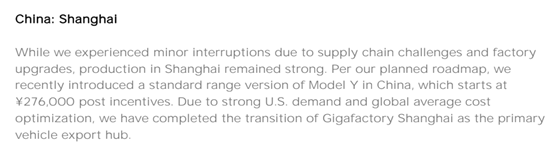 在7月发布的第二季度财报中,特斯拉方面也明确表示,“由于美国本地市场需求强劲,同时出于全球平均成本优化的考虑,特斯拉已经完成将上海超级工厂作为其主要汽车出口中心的转型。”