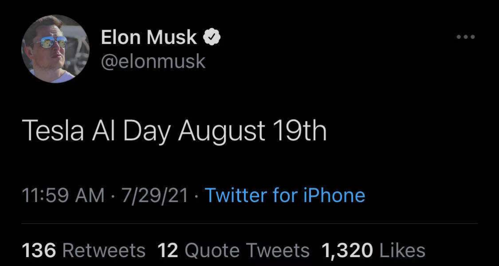 你看,马斯克又宣布,特斯拉AI Day将于美国时间8月19日召开,这也是继特斯拉电池日之后,又一可能引爆全行业的“BIG DAY”。