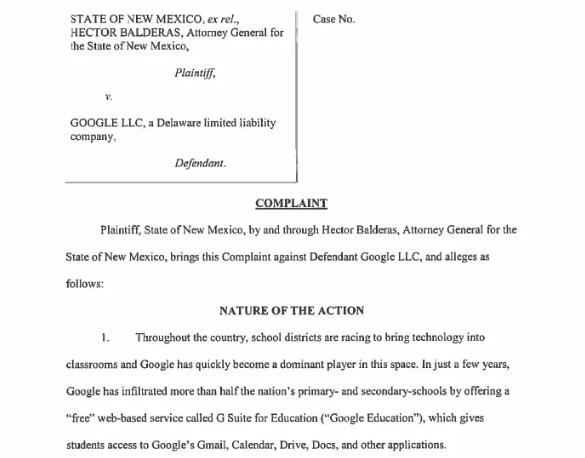 今年 2 月,新墨西哥州总检察长赫克托尔-巴尔德拉斯(Hector Balderas)起诉谷歌,称其通过教育平台违反了《保护知识产权法》。该诉讼指控谷歌收集学生的位置、密码、浏览历史、在谷歌和 YouTube上搜索过的内容、联系人名单和语音记录等信息。