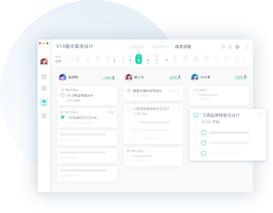 每一个项目的完成,都是由各个支点的完成构成的。在飞项中创建项目后,在【项目】页面可以查看对应项目的概览、事项列表和成员日程。每个项目成员的工作情况都清晰可见,还可以筛选出自己想要了解的事项内容,查看进度。还方便观察成员的工作量,进行合理的再分配。