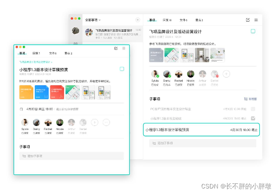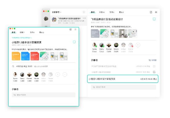 而且再也不用专人催办,只需要在创建新事项的时候添加标签、协作人,还可以设置完成时间和到时提醒,这样每个人的职责都很明确,且利于把控项目完成的时间节点。有的事项步骤较多,还可以继续在下方添加子事项,成员间的沟通则可以用事项IM来实现。