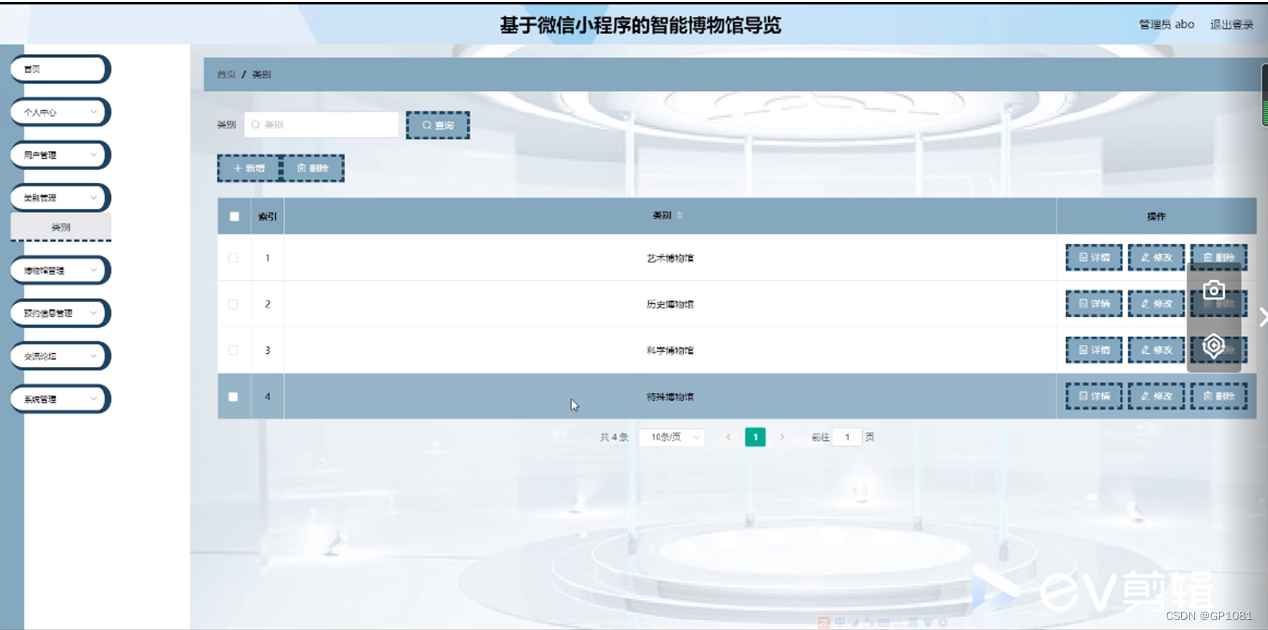 3、查看智能博物馆导览信息:用户登录成功后,能够按分类或者查找智能博物馆导览信息进行管理。