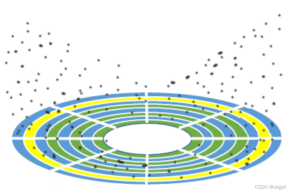其原理非常类似于电脑磁盘的扇区和柱面. 一个硬盘有若干个盘面, 相当于(x,y,z),坐标系的不同的z坐标值; 每个盘面又以一定的角度区间划分为不同的扇区, 相当于不同θ扇区; 每个扇面上又划分不同的同心径向磁道(所有盘面叠在一起就是一个同心径向柱),相当于公式中的d值.
