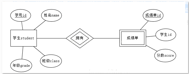 弱实体和强实体的联系必然只有1:N或者1:1,这是由于弱实体完全依赖于强实体,强实体不存在,那么弱实体就不存在,所以弱实体是完全参与联系的,因此弱实体与联系之间的联系也是用的双线菱形。